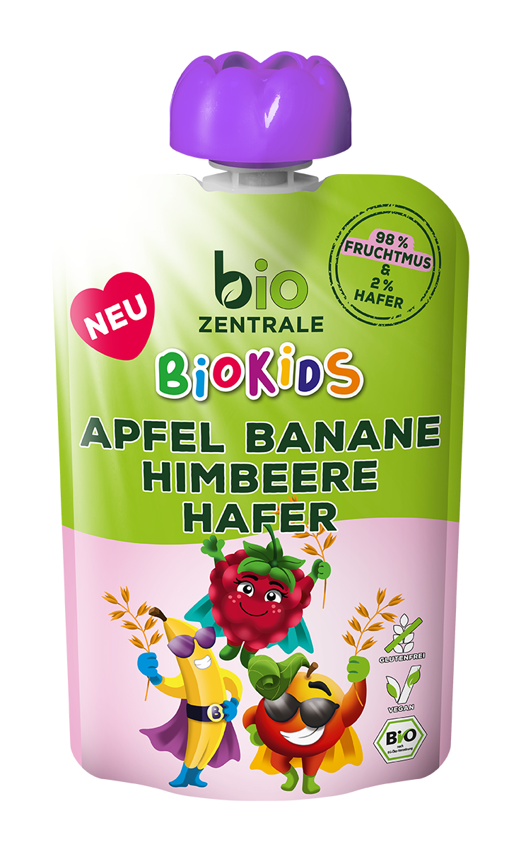 - 2x 90g BioKids Quetschie Apfel-Banane-Himbeer-Hafer