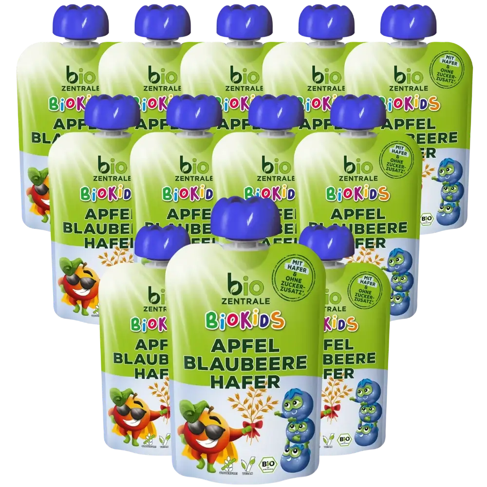 Entdecke unser BioKids Fruchtmus aus Apfel, Blaubeere und Hafer. Ein leckeres Zusammenspiel aus den Früchten und einem Anteil von 2 % Hafer bilden einen köstlichen Genuss. Das Fruchtmus kommt ohne den Zusatz von Kristallzucker aus, ist vegan und eignet sich perfekt als Snack für Zwischendurch.