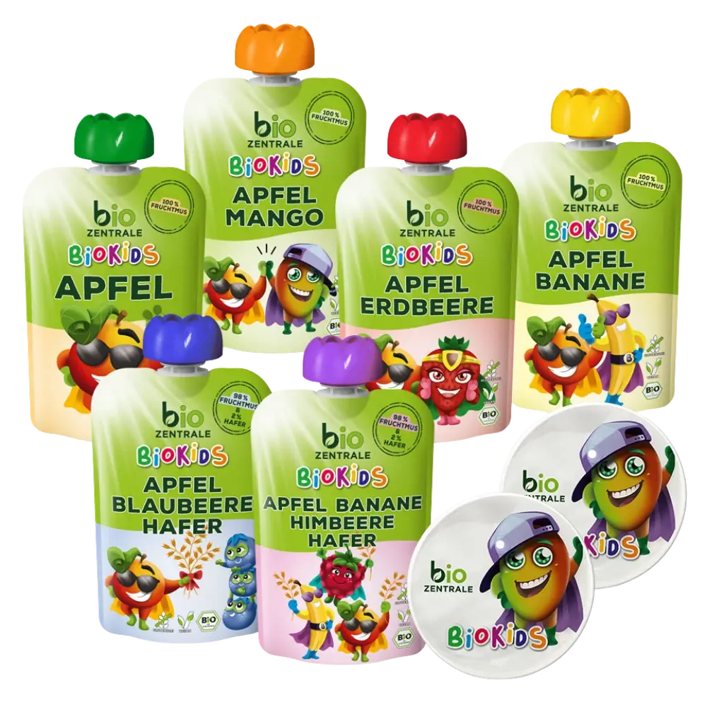 Unsere BioKids Mixbox "Aktiv" beinhaltet alles was aktive Kids brauchen, wenn sie draußen unterwegs sind: unsere Quetschies als schnelle Snacks für Zwischendurch und die beiden Reflektoren fürs Fahrrad oder den Rucksack um gesehen zu werden. Damit steht dem nächsten Abenteuer nichts mehr im Weg.