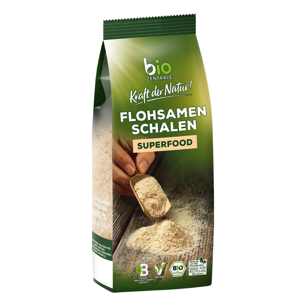 Unsere biozentrale Flohsamenschalen sind neutral in Geruch und Geschmack, reich an Ballaststoffen und haben ein hohes Quellvermögen. Reichere dein Müsli, deinen Smoothie oder Obstsalat mit unseren Flohsamenschalen an. Achte dabei auf eine ausreichende Flüssigkeitszufuhr.